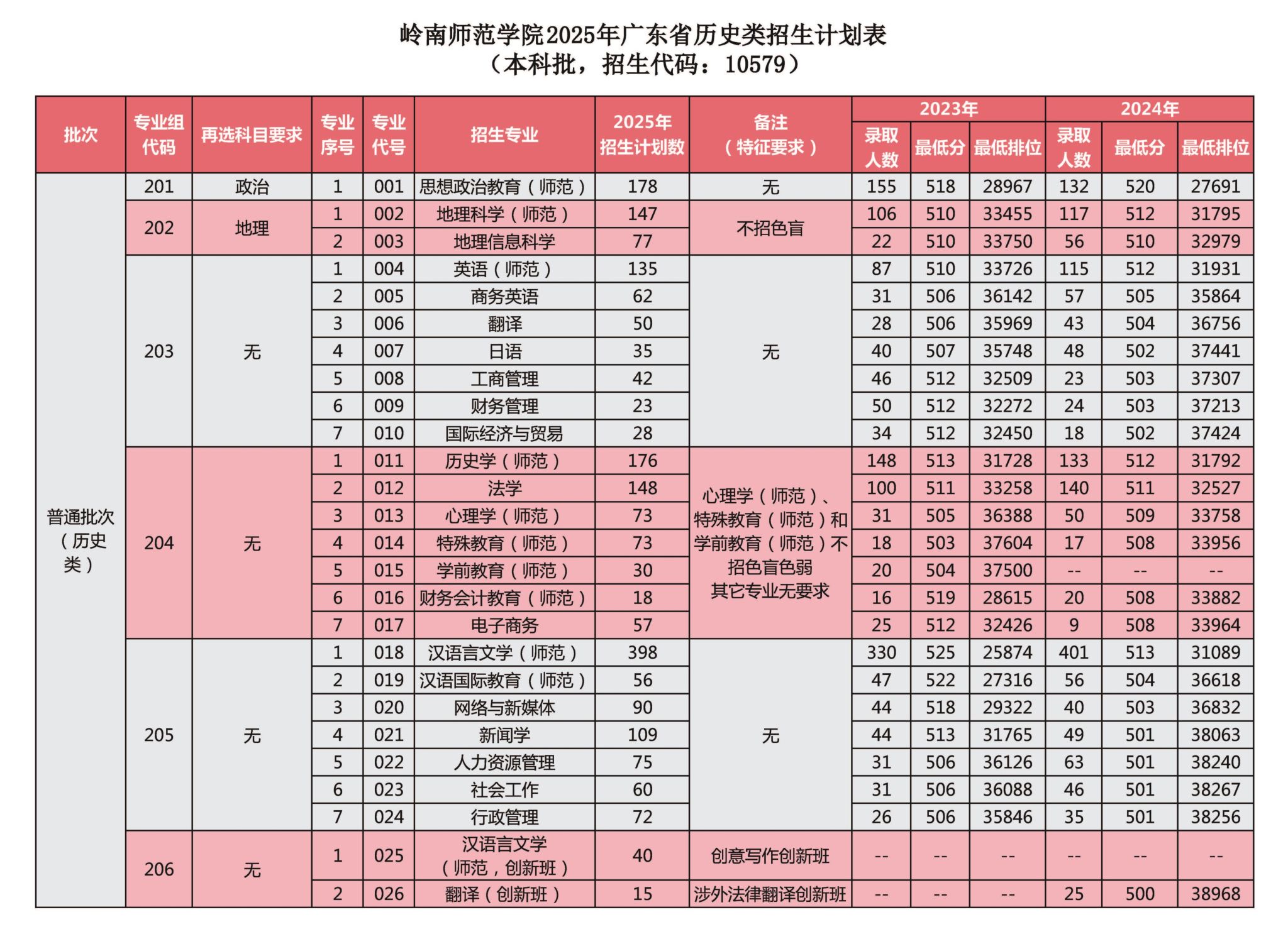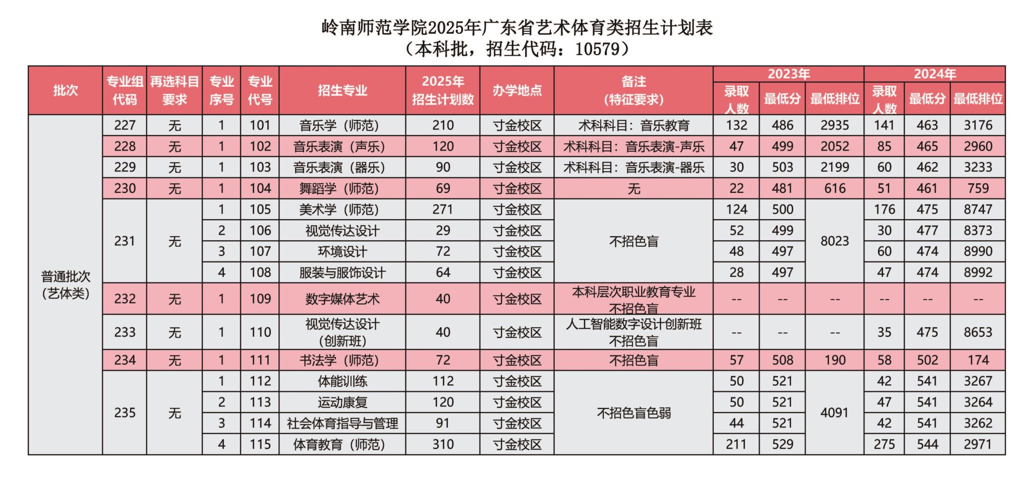 岭南师范学院2025年本科招生计划(院校代码:10579)