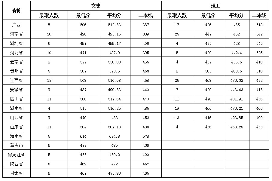 2017年在省外文理科录取分数统计 录入:admin 负责编辑:admin 浏览量: 发布时间:2018-05-22 138 更多 上一条:岭南师范学院2017年广东省招生录取最低排名统计(文理) 下一条:2017年广东省各专业录取分统计(文理)