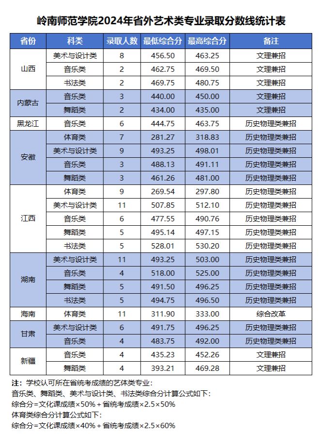 岭南师范学院2024年省外艺术类专业录取分数线统计表 录入: 负责编辑:招生办 浏览量: 发布时间:2025-05-30 上一条:岭南师范学院2025年本科各专业录取分数和最低排位统计表(广东省) 下一条:岭南师范学院2024年省外普通类录取分数线统计表