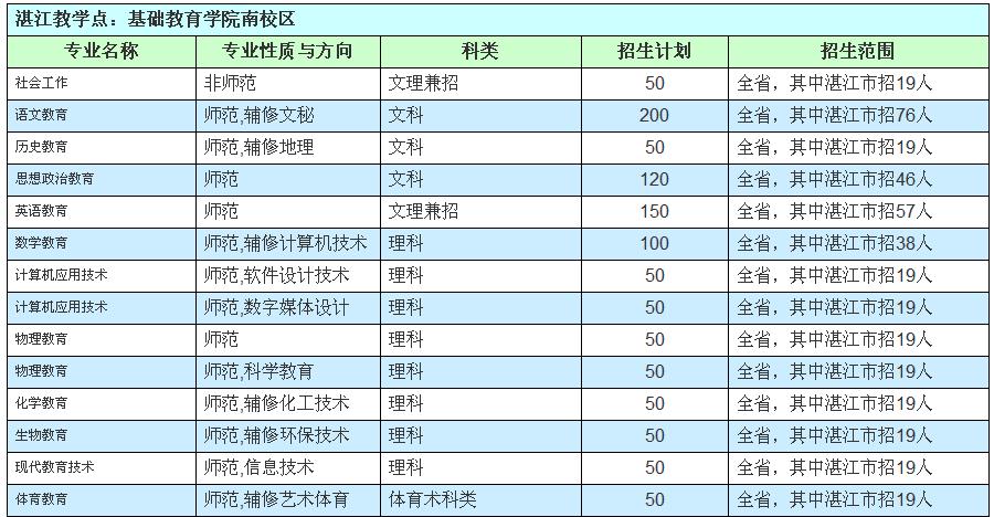 湛江师范学院2010年专科招生计划 录入:zsbxs02 负责编辑:zsbxs02 浏览量: 发布时间:2010-05-28 2010年湛江师范学院 专科招生计划(报考代码:10579) 提示:点击相应的专业名称可查阅专业简介 4 更多 上一条:湛江师范学院2010年本科招生计划(省外) 下一条:湛江师范学院2010年本科招生计划(省外)