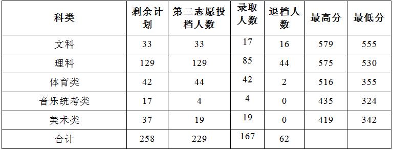 湛江师范学院2012年广东省内第二志愿录取情况公告 录入:zsbxs02 负责编辑:zsbxs02 浏览量: 发布时间:2012-07-24 7月23日,我校的广东省普通高考本科A类第二志愿投档录取工作已结束。各类别投档录取详情如下表: 广东省普通高考第二志愿计划及投档情况一览表 因第一志愿有82名,第二志愿有62名,共144名考生不服从专业调剂需要退档。至此我校有音乐学(师范)专业13名,美术学(师范)专业18名,学前教育(师范)专业16名,机电技术教育(汽车技术,师范)专业21名,应用电子技术教育(师范)专业23名等五个专业共91个计划需要征集志愿录取。 湛江师范学院招生与就业处 二〇一二年七月二十三日 7 更多 上一条:关于我校2012年广东省普通高校招生2A类录取结果网上查询的公告 下一条:关于我校2012年广东省普通高校招生2A类录取结果网上查询的公告