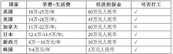 各国留学费用对比表:
