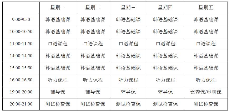 五、语言培训时间:国内半年(6个月),韩国半年(6个月)