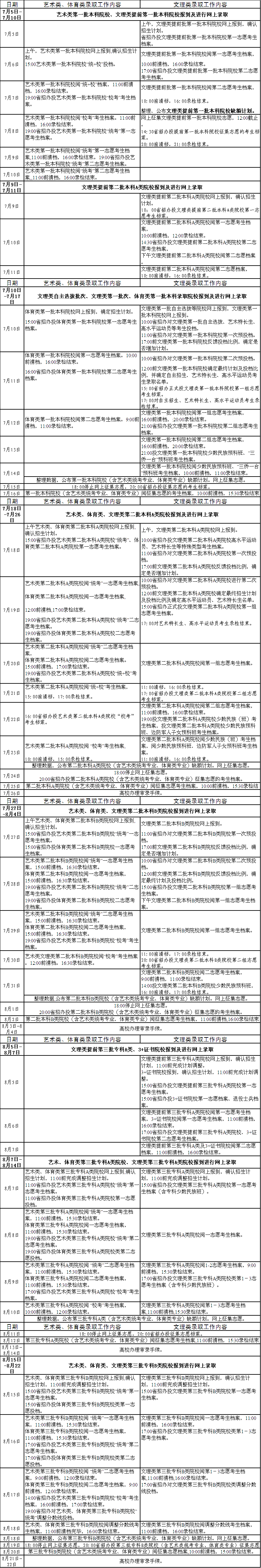 广东省2013年普通高校录取工作日程表 录入:zsbxs02 负责编辑:zsbxs02 浏览量: 发布时间:2013-07-03 注:录取工作日程表如有变动,请以录取系统通知为准 4 更多 上一条:我校2013年广东省2A音乐和美术类第二志愿录取情况公告 下一条:广东省2013年普通高校招生录取最低控制分数线