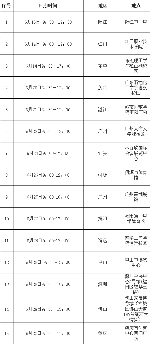 2015年6月13日-6月28日,我校将参加多个城市的现场咨询会,欢迎广大考生及家长到时关注。