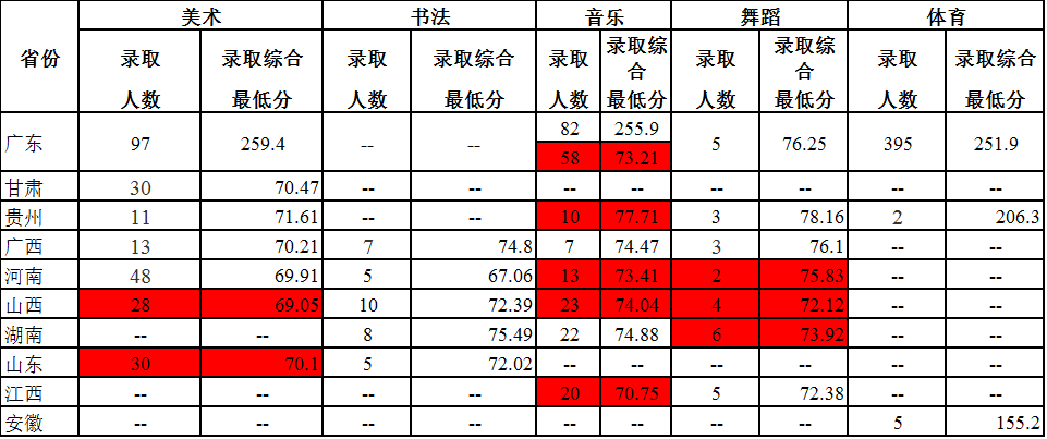 4.学校认可所在省统考成绩的美术类、音乐类、体育类专业:综合分=文化分×30%+专业分×70%