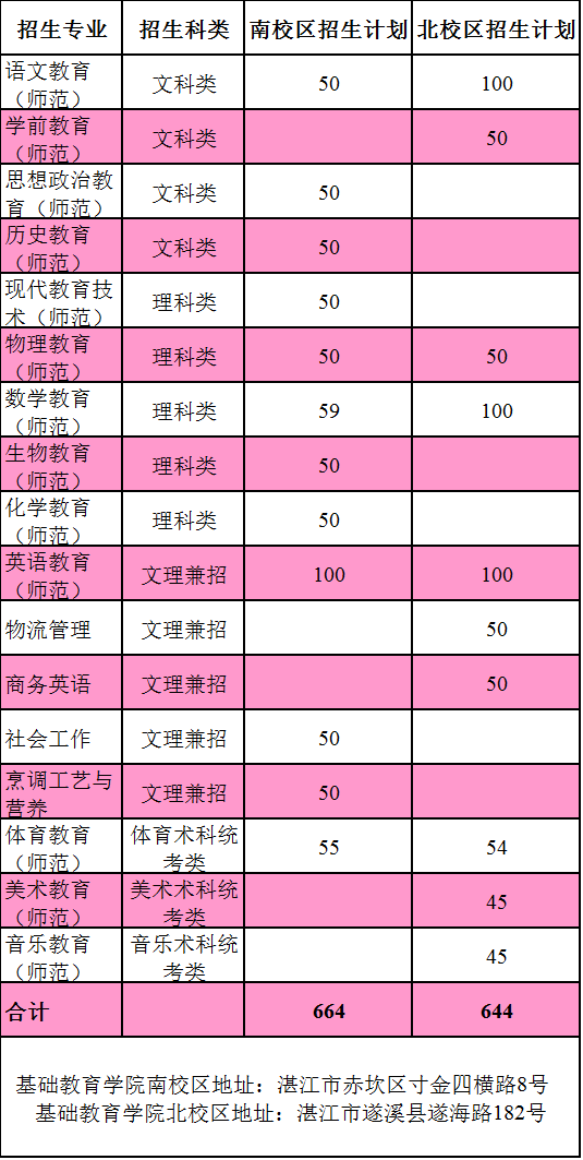 岭南师范学院2016年本科招生计划(报考代码:10579)