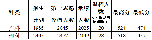 我校文理科类投档录取详情如下表: