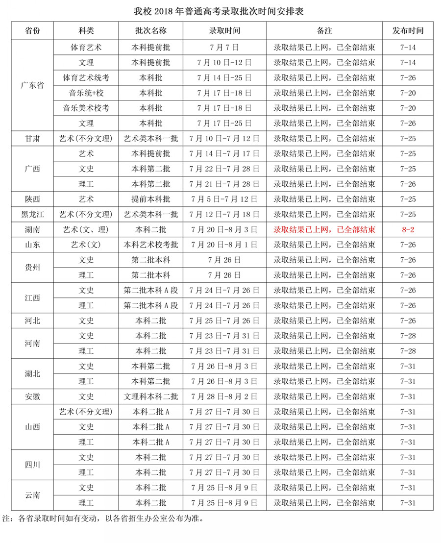 岭南师范学院2018年普通本科招生录取情况公告(8.2更新) 录入: 负责编辑:招生办 浏览量: 发布时间:2018-07-25 各位考生: 为方便广大考生查询录取结果,我校提供2018年招生录取结果网上在线查询, 查询入口(点击进入) 。 注:本网站不承担由于内容的不一致性所引起的一切争议和法律责任,录取结果以最终生源省考试院的数据为准。 岭南师范学院招生办公室 2018年7月 上一条:我校2018年广东省专科批体育艺术统考类专业投档录取公告 下一条:我校2018年广东省本科批文理科投档录取公告