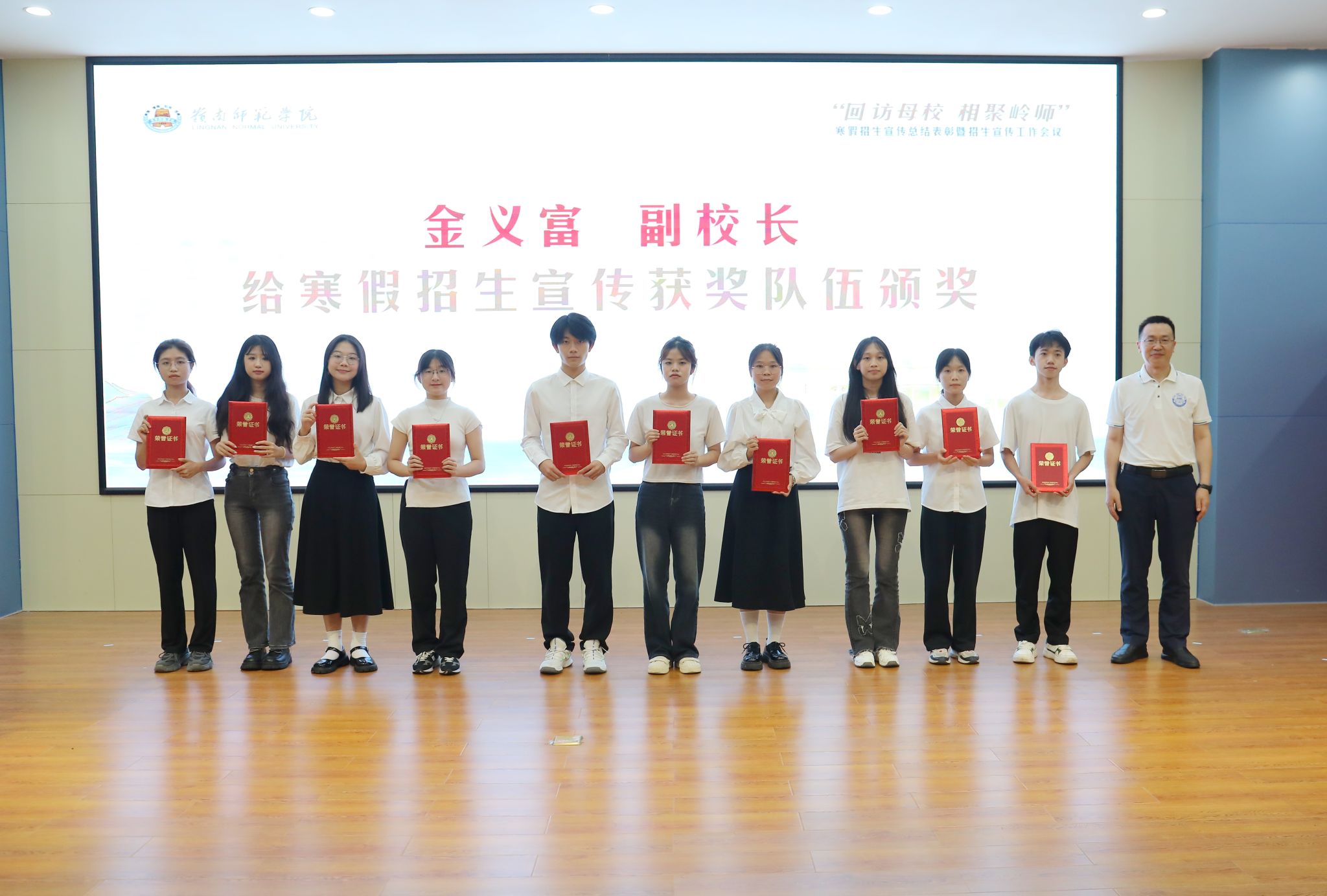 副校长金义富为寒假招生宣传获奖队伍颁奖