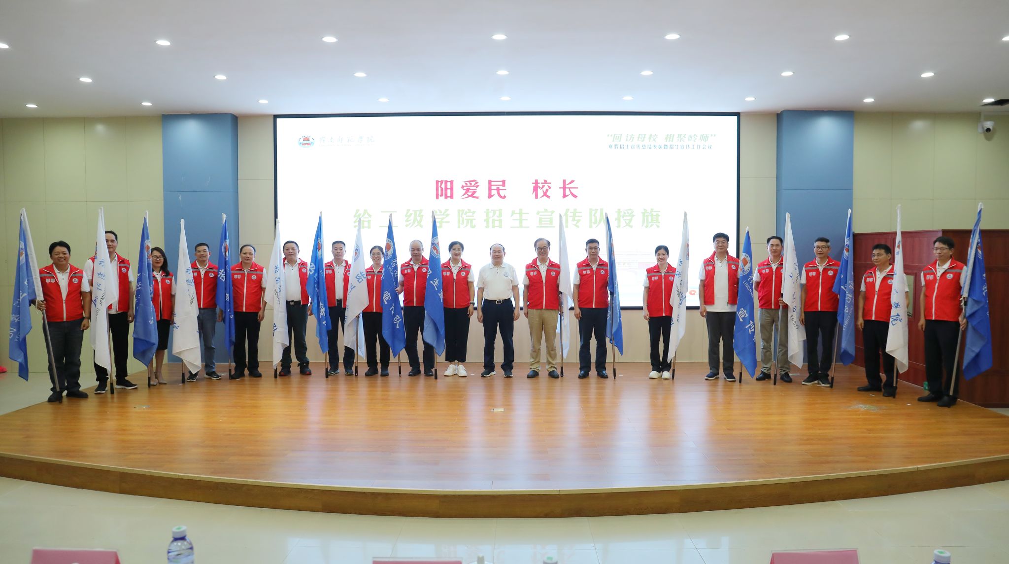 校长阳爱民为二级学院招生宣传队授旗