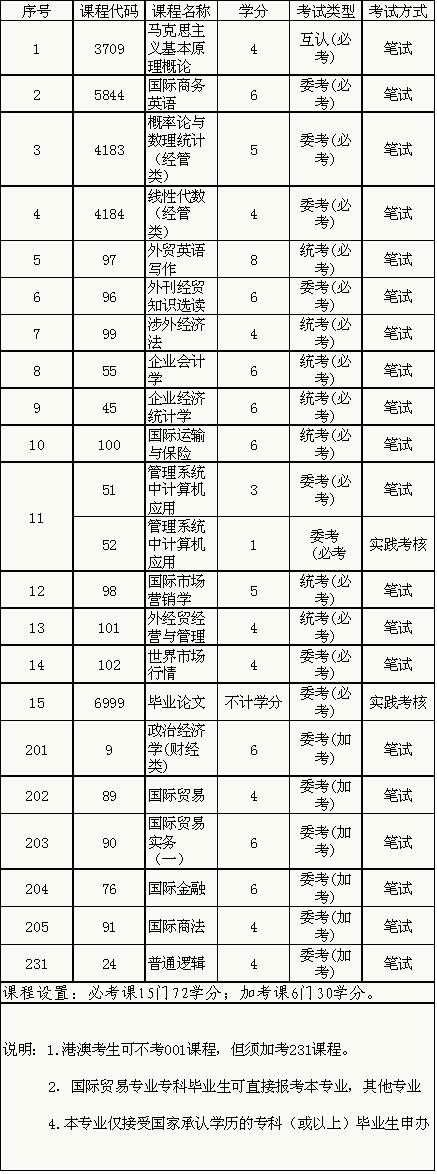 国际贸易专业(独立本科段,B020110)