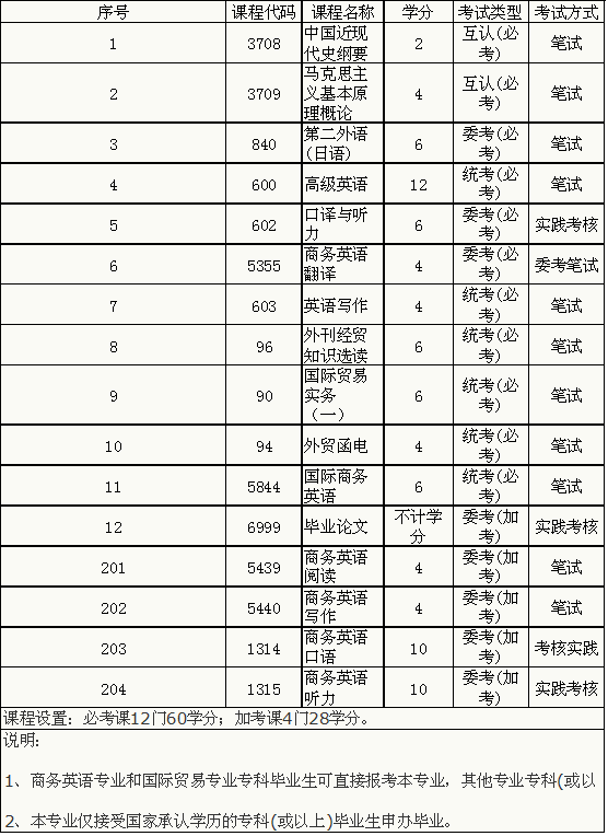 商务英语专业(独立本科段,B050218 )