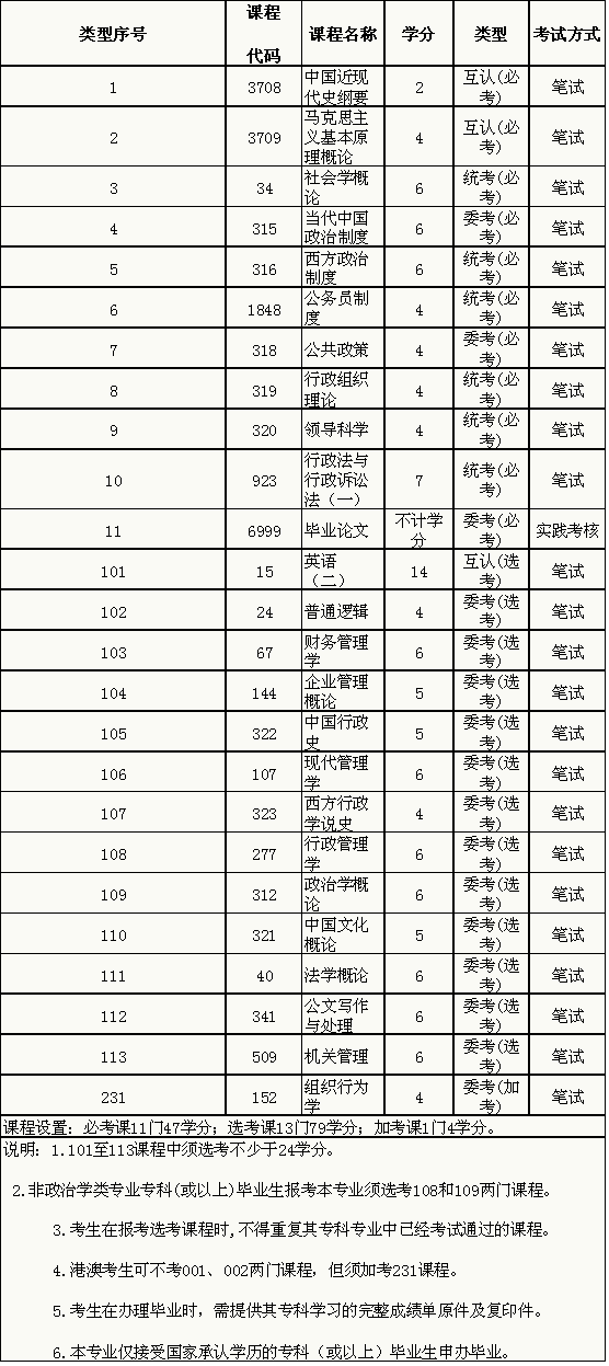 行政管理专业(独立本科段,B030302)