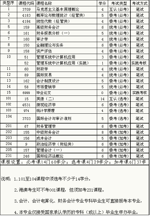 会计专业(独立本科段,B020204)