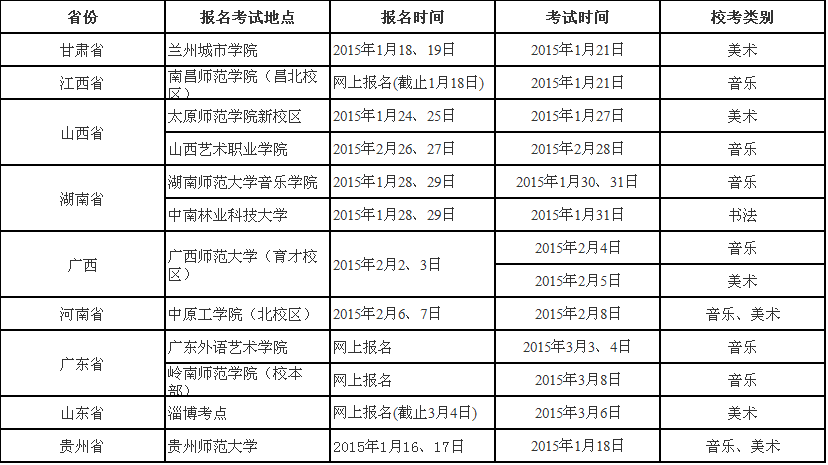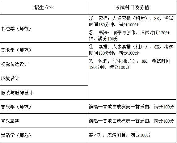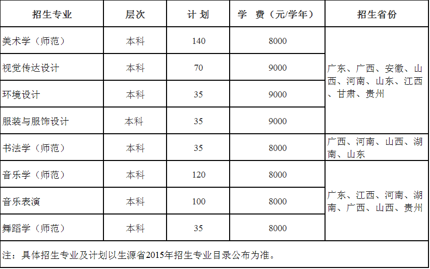 2.广东、安徽和江西的美术类和广东的音乐学专业使用省联考成绩录取,不需参加我校单考;但是广东考生报考音乐表演、舞蹈学专业须参加我校单考。