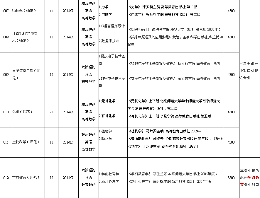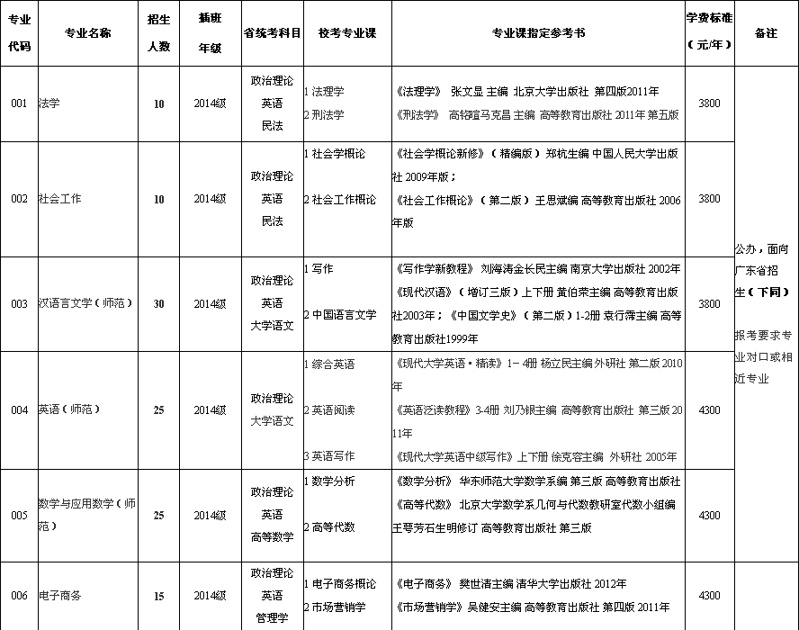 岭南师范学院2016年本科插班生招生专业目录