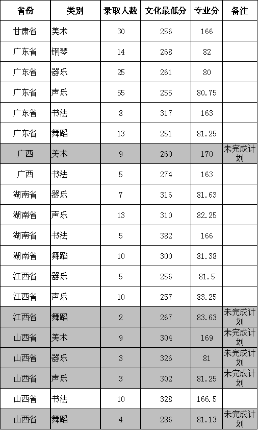 2016年艺术类专业校考成绩录取统计表 录入:zsbxs01 负责编辑:zsbxs01 浏览量: 发布时间:2017-01-16 1373 更多 上一条:2016年普高本科各专业录取分数统计表(广东•文理) 下一条:2016年艺术类和体育类统考成绩录取统计表