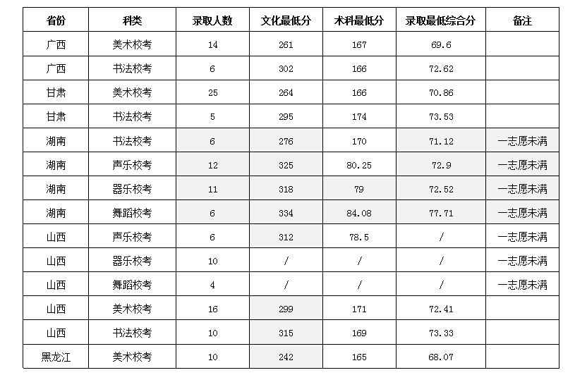 2017年在省外艺术类专业校考成绩录取统计 录入:admin 负责编辑:admin 浏览量: 发布时间:2018-05-22 113 更多 上一条:岭南师范学院2017年广东省招生录取最低排名统计(文理) 下一条:2017年广东省各专业录取分统计(文理)