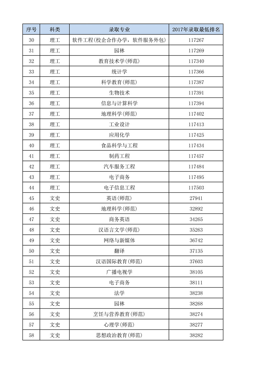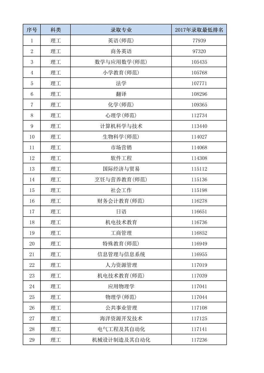 2017年广东省各科类各专业录取最低排名统计 录入:admin 负责编辑:admin 浏览量: 发布时间:2018-05-28 120 更多 上一条:2017年专科各专业录取分数统计表 下一条:2017年广东省各专业录取分统计(文理)