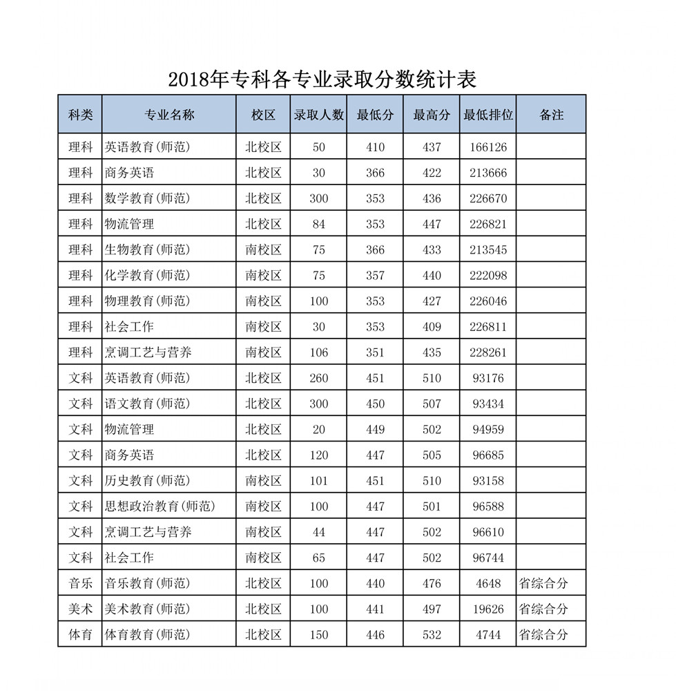 岭南师范学院2018年专科各专业录取分数和最低排位统计表 录入: 负责编辑:招生办 浏览量: 发布时间:2019-06-03 上一条:岭南师范学院2019年本科各专业录取分数和最低排位统计表(广东省) 下一条:岭南师范学院2018年本科各专业录取分数和最低排位统计表(广东省)