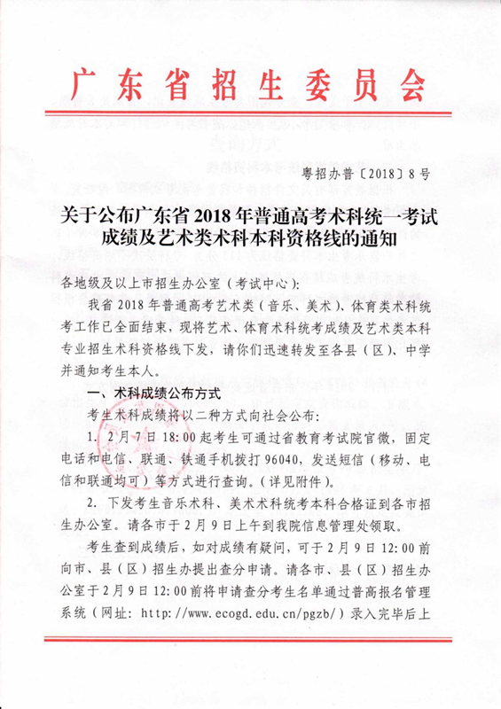 广东省2018年艺术类术科本科资格线 录入:admin 负责编辑:admin 浏览量: 发布时间:2018-02-07 2947 更多 上一条:广东考生:2018年艺术类校考网上报名截止日期延期至22日 下一条:岭南师范学院2018年艺术类校考网上报名操作说明