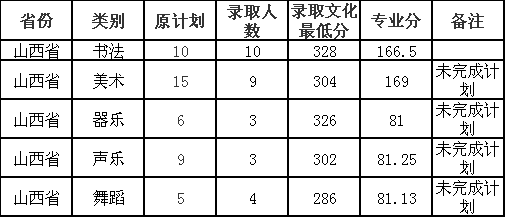 我校2016年艺术类专业在山西省招生录取情况 录入:zsbxs01 负责编辑:zsbxs01 浏览量: 发布时间:2017-01-13 注明:2016年在山西省未完成招生计划的类别,说明考生只要获取我校的艺术类专业合格证和高考文化分达到山西省划定的最低控制线,志愿填报我校即可录取。 2016年艺术类单考合格证发放情况(山西省) 47 更多 上一条:岭南师范学院2017年艺术类专业招生简章(图片版) 下一条:岭南师范学院2017年艺术类专业招生简章(图片版)