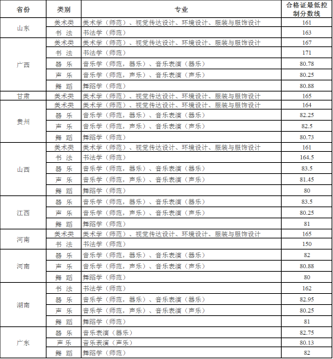 我校2015年艺术类单考工作已顺利结束,根据教育部相关文件精神结合报考情况,按美术类、书法类、音乐(声乐类)、音乐(器乐类)、舞蹈类分别划定我校各省各类专业合格证最低控制分数线(详见附表),并向各生源省招生办公室报送合格名单,由生源省招生办公室审核,最终合格名单以生源省招办审核通过为准。