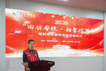 12月14日晚,岭南师范学院2026年“回访母校・相聚岭师”寒假招生宣传启动仪式在教三111多功能室举行。副校长金义富为寒假招生宣传队长们授旗,正式启动2026年寒假招生宣传工作。招生与就业处副处长周明俊主持会议。